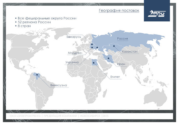 - Государственное автономное учреждение социального обслуживания Новосибирской области «Новосибирский областной геронтологический центр», г. Новосибирск – техническое обслуживание и ремонт электростанции ЭД-60-Т/400-1РК- 1 шт.